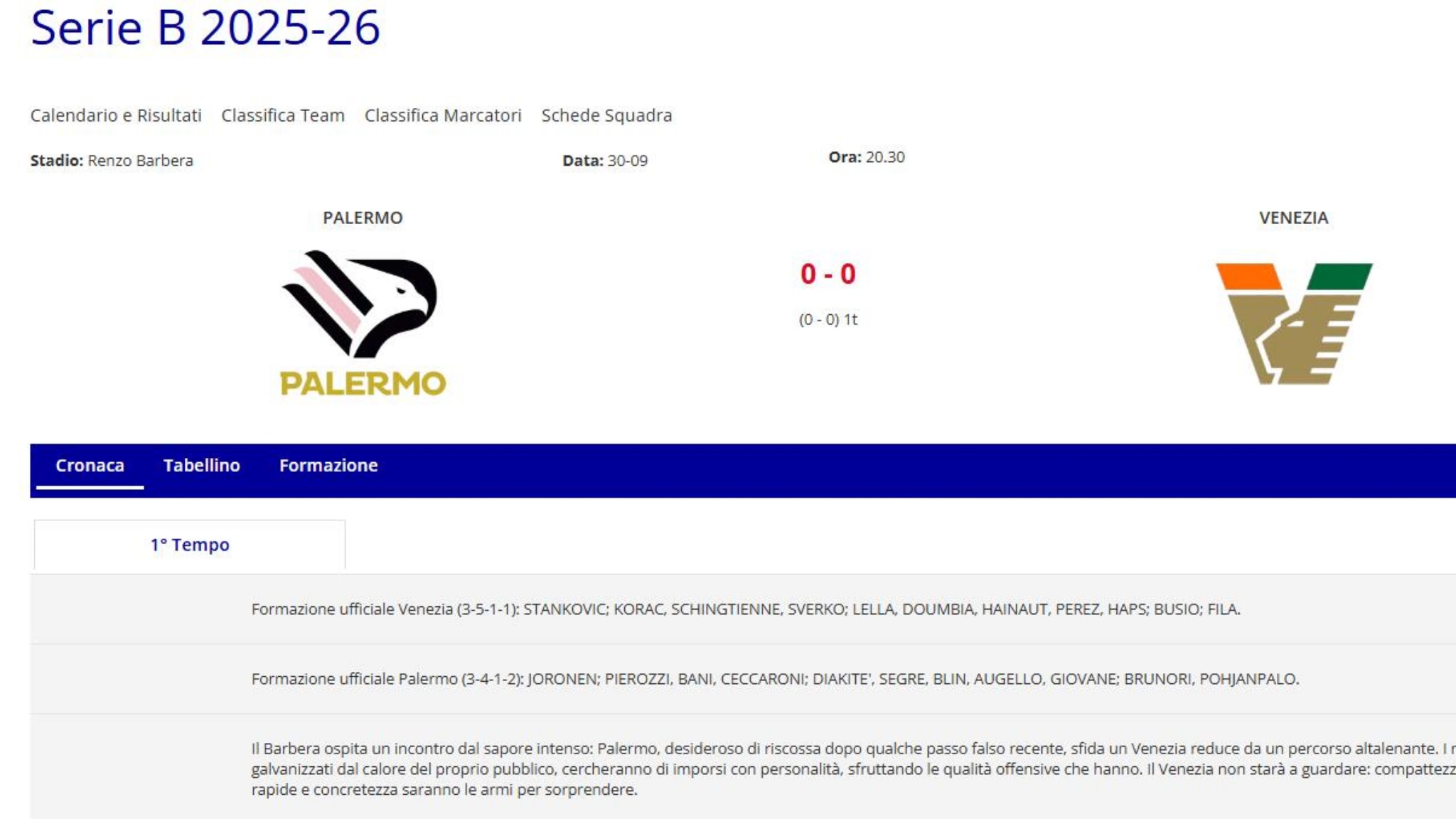 Palermo e Venezia si sfidano alle 20:30 allo stadio Barbera per il turno infrasettimanale di Serie B. Il Palermo è terzo in classifica, il Venezia settimo. Entrambe le squadre sono determinate a ottenere la vittoria per consolidare la propria posizione in campionato. Il tecnico Inzaghi si prepara a un match equilibrato, consapevole dell’importanza del sostegno del pubblico per la propria squadra. Il Palermo è in una serie positiva di tre vittorie e due pareggi, mentre il Venezia arriva al Barbera dopo una vittoria nell’ultimo turno. Si prevede un’atmosfera carica di tensione e emozioni, con oltre trentamila tifosi pronti a sostenere i propri colori.