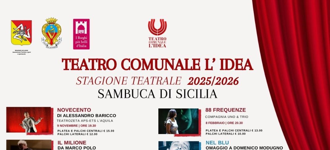 Si apre la nuova stagione del teatro comunale L’Idea di Sambuca di Sicilia, con un programma che prevede dieci spettacoli di prosa e sette di musica. Gli eventi toccheranno temi vari, dalle storie di donne e uomini a riflessioni su migrazioni e solidarietà.